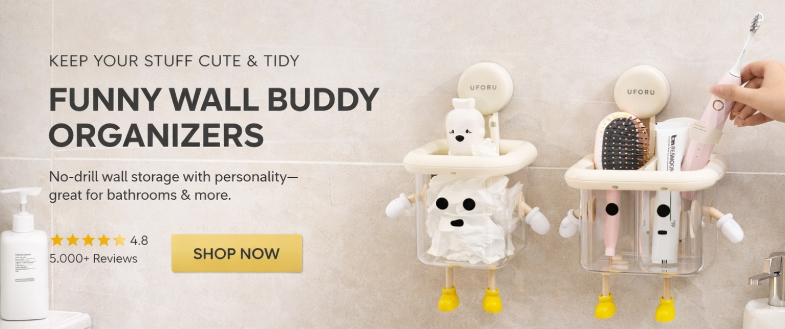 StickoBuddy No-Drill Suction Wall Storage Pod – Cute Bathroom Organizer for Toothbrush, Cosmetics & Small Essentials